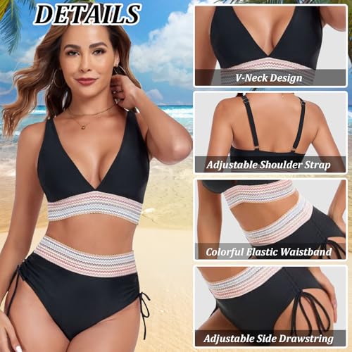 ✨【Onzichtbare bh】De bikiniset met hoge taille heeft een ingebouwde, uitneembare, lichtgewicht vulling, die maximale ondersteuning biedt en je meer zelfvertrouwen geeft.