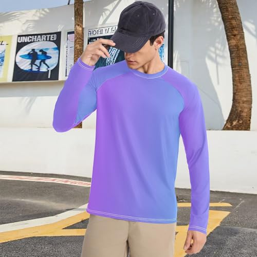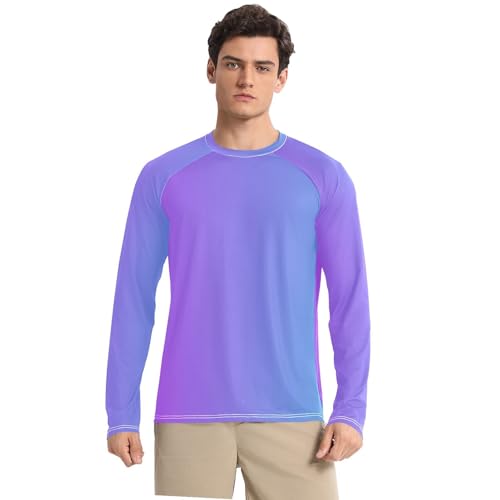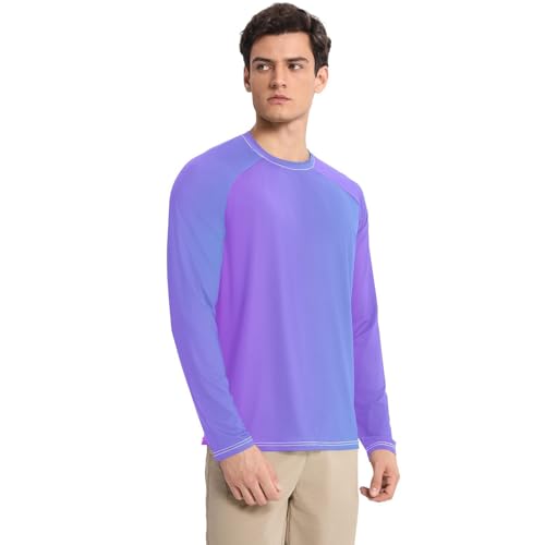 Ronde hals: Rash Guard voor heren met ronde hals biedt uitstekende bescherming tegen de zon en flatlock-naden bieden geen schuren comfort, voor buitenactiviteiten zoals golf, vissen, wandelen, reizen, varen, klimmen, hardlopen, training, enz.
