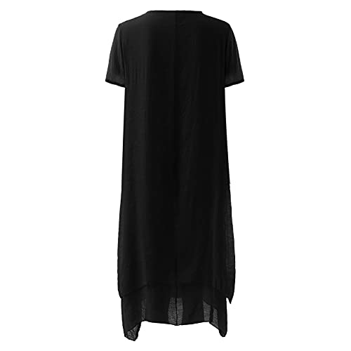 BOTCAM Maxi-jurk voor dames, lang, elegant, boho-jurk, zomerjurk, retro, effen, ronde hals, korte mouwen, zomer…