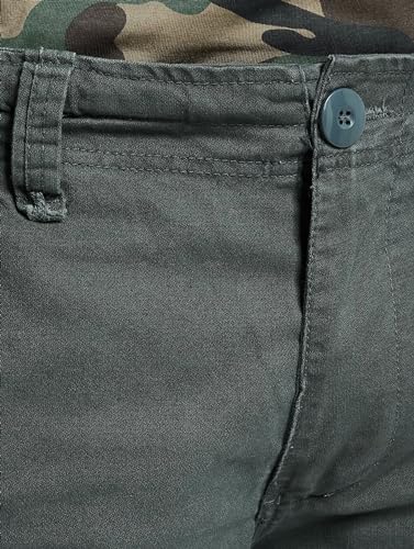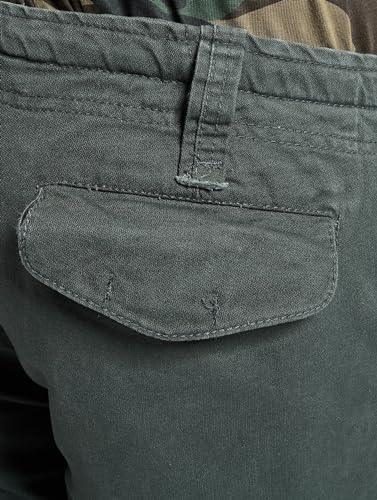 Twee achterzakken met klep en enkele grote knopen. Twee zijdelingse cargozakken met klep en twee grote knopen