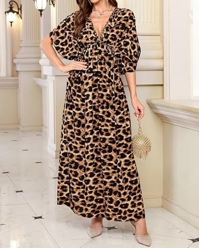Bsubseach Strandjurk voor dames, Turkse kaftan, lange strandjurk, 2 luipaard, One size