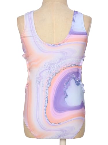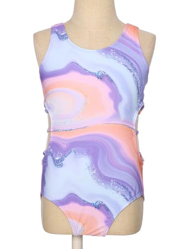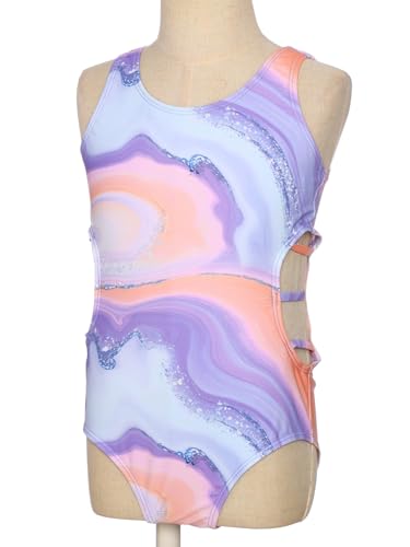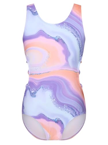 CHICTRY Badpak voor meisjes, tie-dye motief, badmode, mouwloos, zwempak, uv-bescherming, badkleding, beachwear, paars, 158-164
