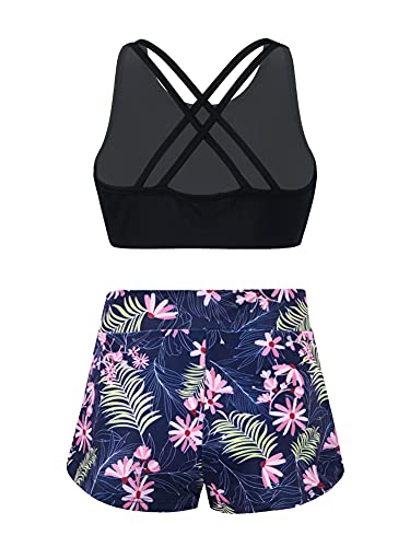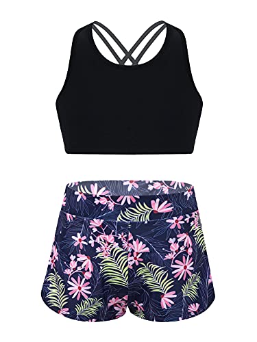 3 stuks crop tops voor meisjes met U-hals, gekruiste banden, open rug, met shorts en slipset