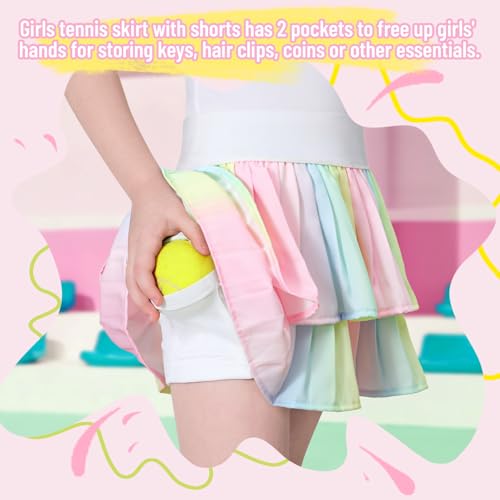 🌸Skort met 2 zakken: tennisrok voor meisjes met ingebouwde shorts voor gemiddelde dekking en 2 zakken om meisjeshanden vrij te maken voor het opbergen van sleutels, haarclips, munten of andere benodigdheden.