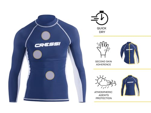 Premium lange mouw Cressi rashguard zwemshirt voor heren en dames, vervaardigd uit hoogwaardige stretchstof, uitstekend als UV shirt heren, surf shirt men of zwemshirt voor mannen ter bescherming tijdens snorkelen, duiken of watersport