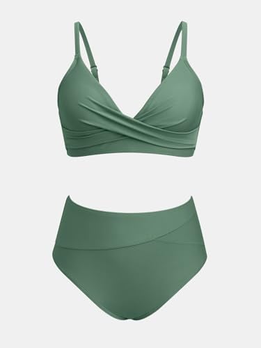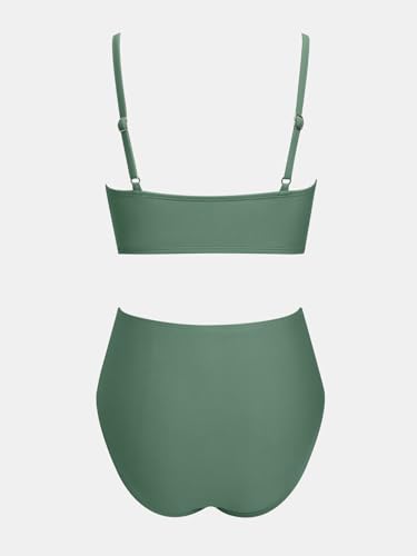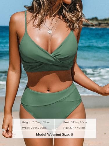CUPSHE Bikiniset voor dames, 2-delig, gedraaide voorkant, hoge taille, V-hals, gewatteerd, badkleding, zwemkleding, legergroen, S