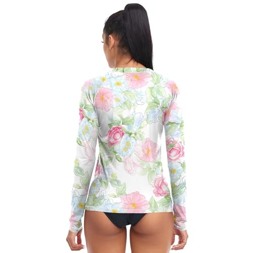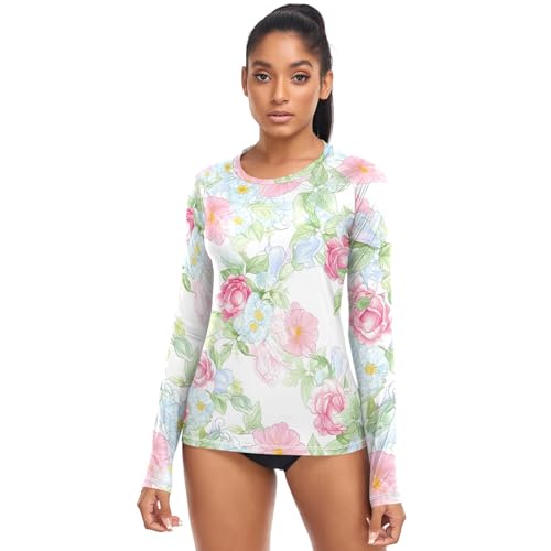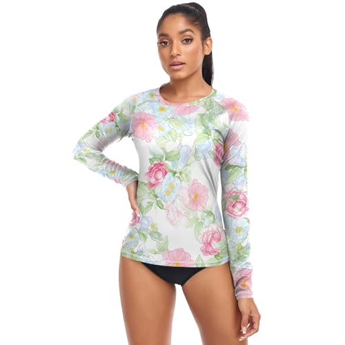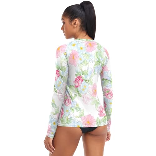 Rash Guard Materiaal: Gemaakt van 90% polyester + 10% spandex, dames zwemshirt is ademend, sneldrogend en lichtgewicht, huidvriendelijke stof voor de hele dag comfort op warme zomerdagen.