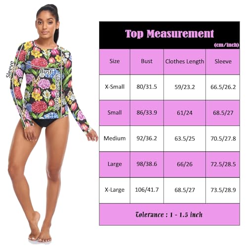 Be the first to review “Dames Rash Guard Shirts Zonbescherming Kleding UPF 50+ Lange Mouw Zwemshirts Badpakken, Kleurrijke heldere bloemen, M”