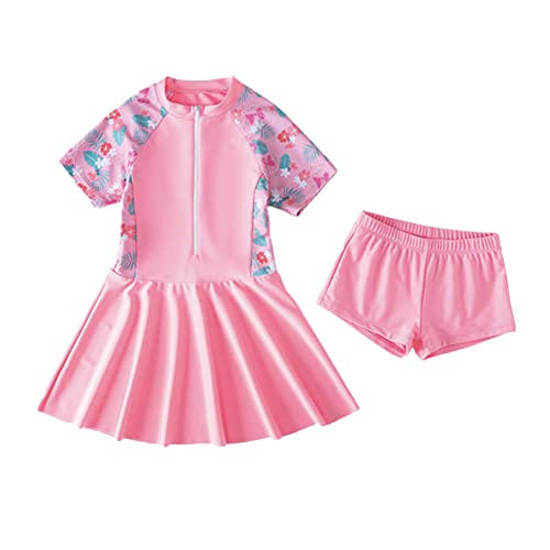 FedMois Kinderen Meisjes Zwempak 2-delig Badmode Set, Badpak met rok + Zwemshorts, Roze, 7-8 jaar