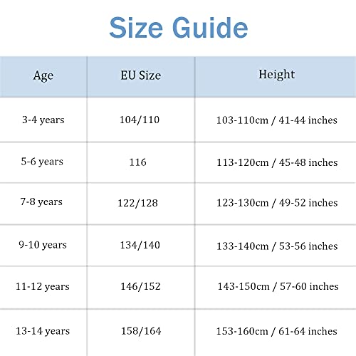 Maat 3-4 jaar, EU 104/110. Maat 5-6 jaar, EU 116. Maat 7-8 jaar, EU 122/128.