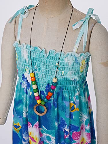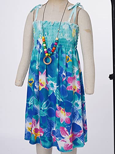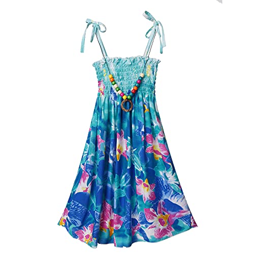 Kinderen meisjes Boheemse stijl bloemenprint spaghetti schouderbanden zomerjurk strandjurk met/zonder halsketting