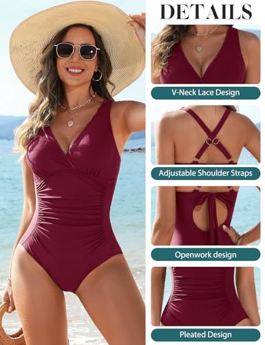 FemiChic Badpak Dames Buikweg V-hals Badpakken Grote Maten Vorm Sexy Zwempakken voor Vrouw Sport Badmode, paars rood, M