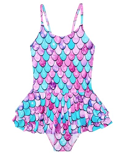 FEOYA Eendelig badpak voor meisjes, zeemeermin, zwempak, schattig, badmode, Hawaiiaanse badkleding, zonnebescherming, badpak, sneldrogend, zwemkleding, stretch, strandmode, 4-12 jaar, B 2, 6-7 Jaren
