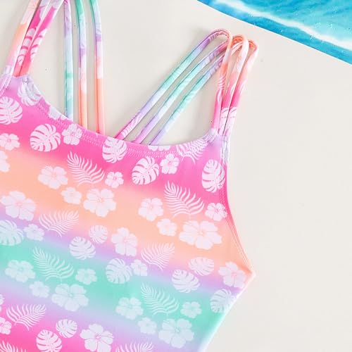 Generisch 2025-1 Stuk Badpak voor Meisjes, Zwemkleding met Uitsparingen, Zomer Batique Patroon, Strand, Sport, Baden Badpak Gr. 146, roze, 9-10 Jaar