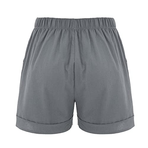 Generisch 2026 Shorts Casual Vrouwen Katoen Hoge Taille Casual Zakbroek Losse Rechte Been Mode Sportbroek Fitness Shorts Dames Sexy, grijs, S
