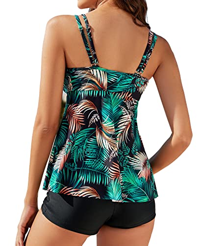 [Uniek ontwerp]: tweedelig elegant badpak met gewatteerde vulling en getailleerde shorts. De tankini-top met dubbele bandjes is aantrekkelijk en stijlvol.