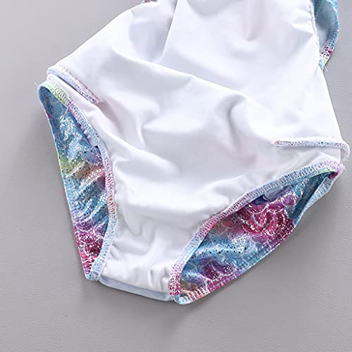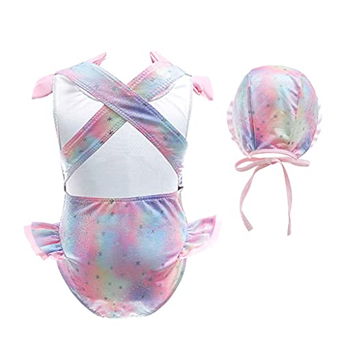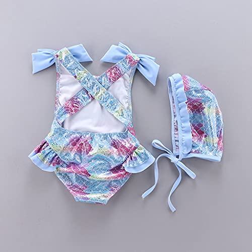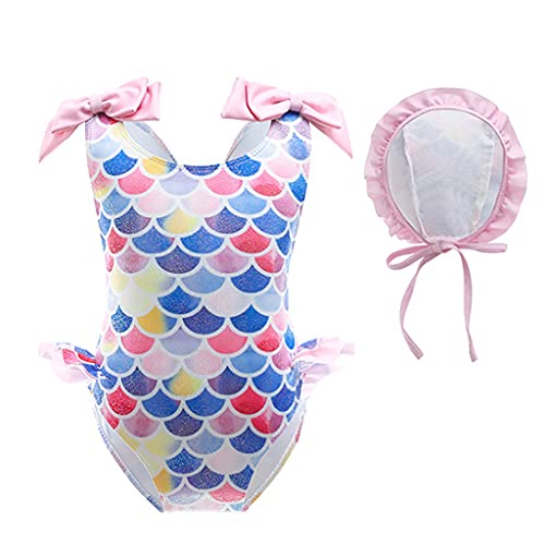 Greabuy Kinderen Meisjes Monokini Badpak met Zwemset Regenboog Visschubben Gedrukt Badmode Mouwloos Strik Badpak, J, 100 cm