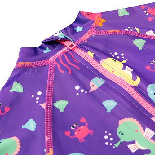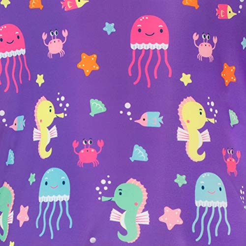 Stand tripjes zullen nog leuker worden in dit zeeleven surf pak dat zeker indruk zal maken! Met een paarse achtergrond en een all-over print van hun favoriete oceaan dieren inclusief kwallen, zeepaardjes, krabben en vissen. Ontworpen door Harry Bear, dit paarse surfpak heeft een makkelijke rits achter zodat omkleden makkelijk is. Of je nu gaat vissen of zwemmen in de zee, dit schattige all-in-one zonnepak is comfortabel en stijlvol voor spatteren aan de zee!