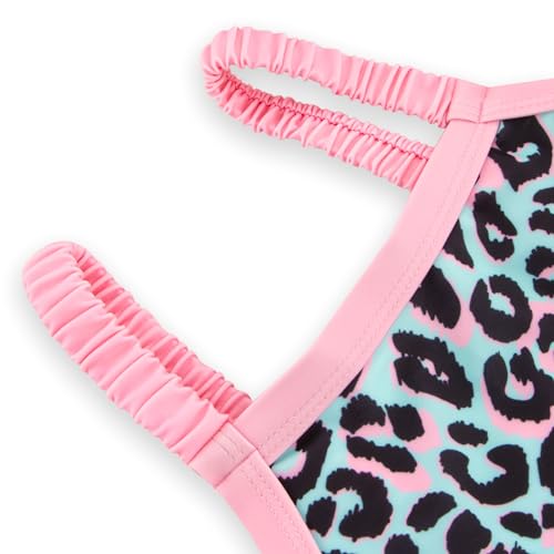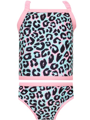 Luipaard Zwemset Die De Show Steelt: Duik in stijl met deze tankini met luipaardprint voor meisjes! Het zwempak waar meisjes dol op zullen zijn, heeft een levendige blauwe achtergrond en speelse roze en zwarte accenten rondom elke luipaardvlek, het is de perfecte mix van plezier en mode voor elke dag aan het zwembad