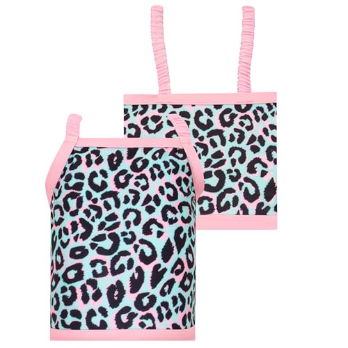 Gecoordineerde Dierenprint Charme: Deze tankini set met luipaardprint bevat een top en bijpassende slipjes, beide versierd met een chique luipaardprint. De slipjes van dit schattige badpak voor meisjes hebben contrasterende roze bies en een tailleband, wat de speelse look versterkt