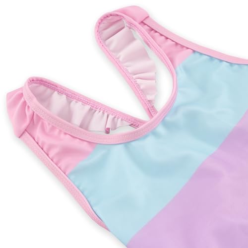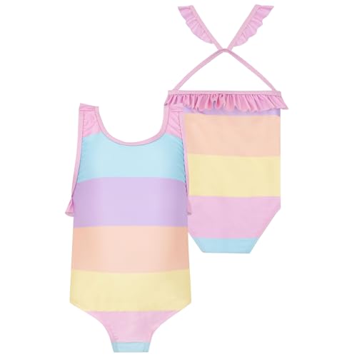 Meisjes Zwempak met Ruches: Het schattige zwempak voor meisjes is versierd met charmante ruches op de bandjes en een bijpassende ruche langs de bovenzoom aan de achterkant, dit regenboog zwempak voegt een vleugje speelsheid toe aan de zwembadkant