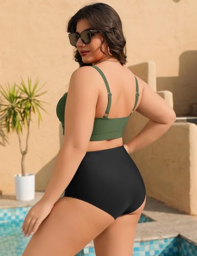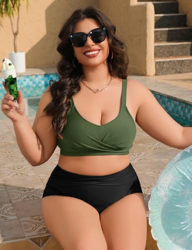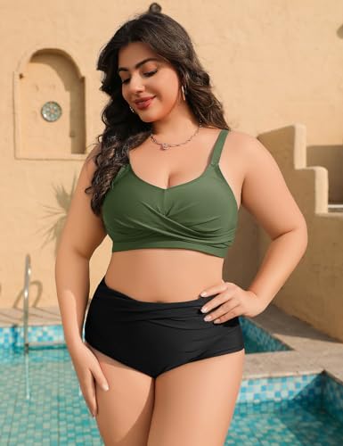 Plus size bikiniset: het tweedelige badpak heeft een twist front bikini-bovenstuk, past perfect bij bikinibroekjes met hoge taille. Wij bieden je zowel effen als contrasterende kleuren om uit te kiezen. Effen kleuren zijn eenvoudig en klassiek, terwijl contrasterende kleuren een vleugje mode toevoegen aan je strandkleding.