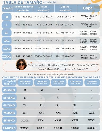 Materiaal: deze plus-size bikiniset voor dames is gemaakt van hoogwaardige materialen, die zeer elastisch, licht en ademend zijn, niet doorschijnend. Zachte volledige voering geeft extra bescherming aan de huid.