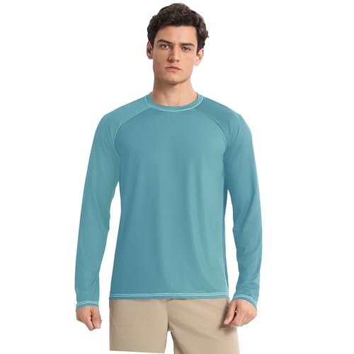 Sneldrogend: UPF 50+ voor heren is voorzien van een hoogwaardige vochtafvoerende stof die vocht van de huid afvoert, ademend en snel droogt. Ultrazachte en sneldrogende stof biedt extreem comfort is zeer licht, ademt vrij en snel en heeft ruimte voor lucht om tussen je huid en stof te stromen, waardoor shirts niet aan de huid blijven plakken.