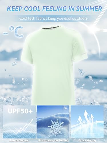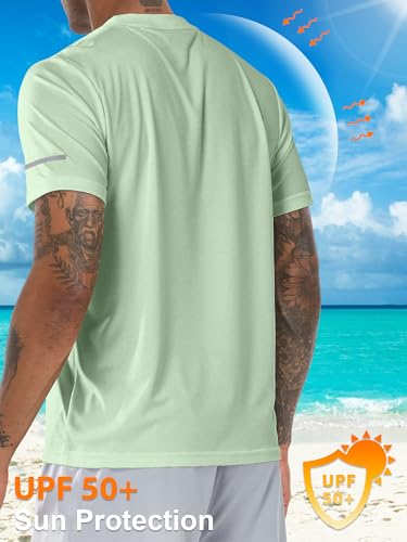 Heren Rash Guard UPF 50+ Zonbescherming Kleding Korte Mouw T-shirts voor Mannen Lichtgewicht Sneldrogende SPF UV Zwemshirts, Lichtgroen, XL