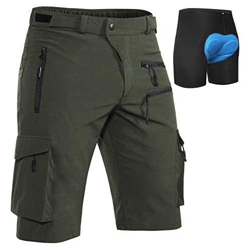 Hiauspor MTB Broek Heren Korte Fietsbroek Fietsbroek Heren Sneldrogende Mountainbike Broek Ademende Fietsbroek Hiking Broek Cargo Trekking Bermuda Outdoor
