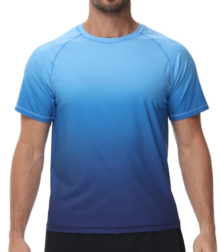 Huayuzh Rash Guards UV-shirt voor heren, zwemshirt, 1-blauw verloopkleur, M
