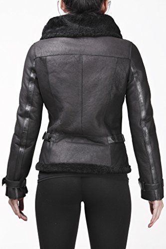 Infinity Vrouwen Zwarte Piloot Vintage Echte Shearling Schapenvacht Merino Wol Vliegende Lederen Jas
