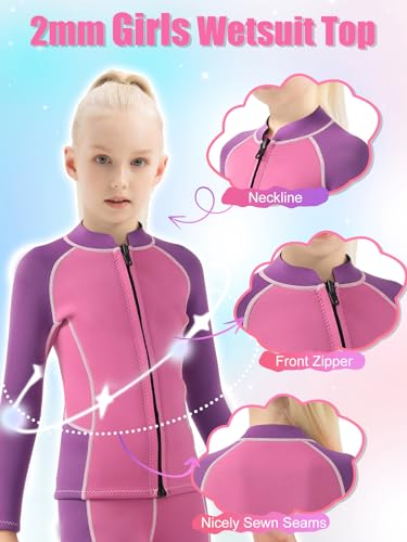【Een veelzijdig wetsuit jack voor kinderen】2 mm neopreen meisjesjack voor kinderen kan ze een beetje extra drijfvermogen geven en kinderen helpen om snel zwemvaardigheden op te vangen. Behalve zwemmen, kunnen kinderen het thermische shirt gebruiken om te surfen, kajakken, duiken, snorkelen, paddleboarden, boogieboarden en vele andere watersporten.