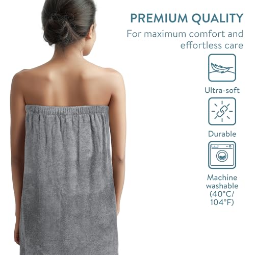 Hoogwaardig materiaal: de badstof sauna sarong is gemaakt van 100% puur katoen. Dit garandeert een hoge zuig- en slijtvastheid en maakt hem knuffelzacht en huidvriendelijk.