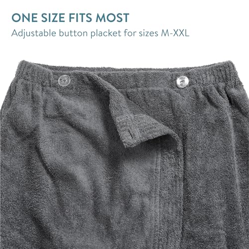 In grootte verstelbaar: dankzij de verstelbare knoopsluiting past de saunakilt voor maten van M tot XXL.