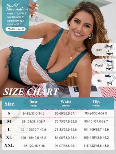 Bikinibroekje met hoge taille: Joligiao bikiniset met hoge taille biedt buikcontrole, creëert een afslankend effect en verstelbaar trekkoord.