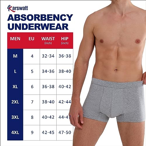 Herbruikbaar bubbel-incontinentie-ondergoed: KARSWATT lekvrije ondergoed biedt betrouwbare bescherming die vocht en geuren onmiddellijk opvangt. Met super absorberend materiaal en comfortabele stof voor ultieme prestaties.