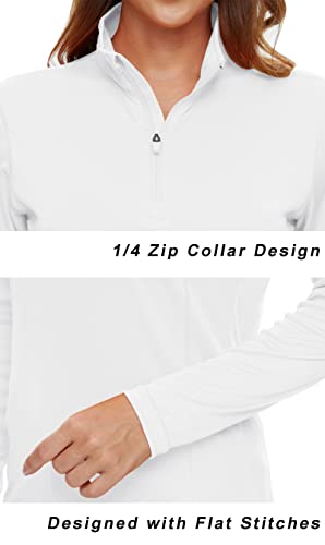 KEFITEVD UPF50+ Rash Guard voor dames, lange mouwen, 1/4 ritssluiting, licht, opstaande kraag, lange mouwen, voor hardlopen, wandelen, Wit, L