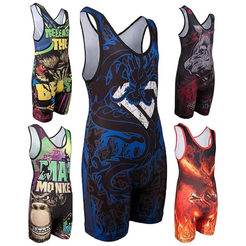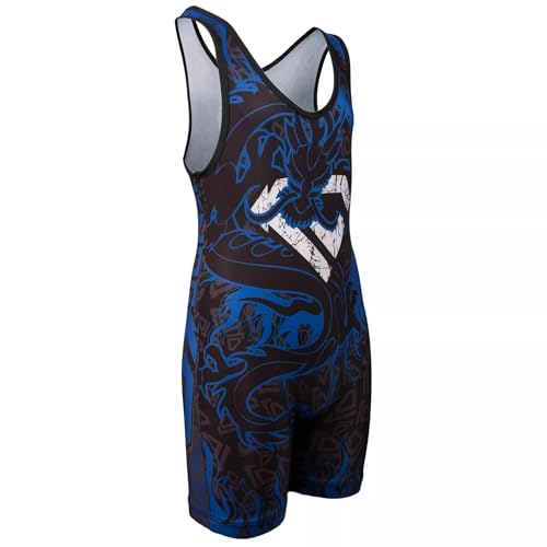 KO Sports Gear ‘s Blue Dragon Wrestling Singlet (Adult M: 110 – 150 lbs)
