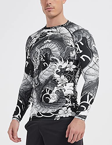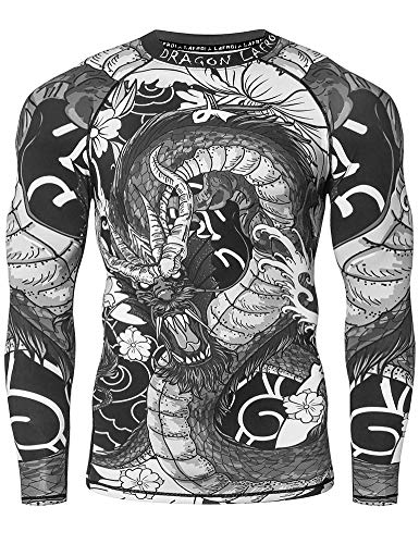 LAFROI Long Sleeve UPF 50+ Base Layer Performance Compression Shirt Rash Guard-CLY08 Dragon Size XL