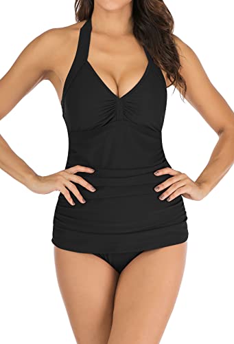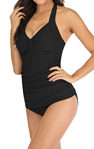Hoge taille met plooien ontwerp van de tweedelige tankini set badmode met grote afstanden kan het tankini badpak perfect buikweg-effect geven. Past zich perfect aan het figuur aan. Als je rond bent, kun je het tweedelige badpak dragen, omdat het het plastic effect kan vormen. Je kunt het ook dragen als je dun bent, omdat het je er sexy laat uitzien.