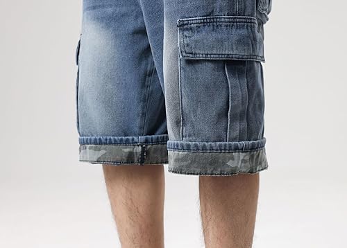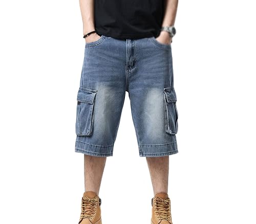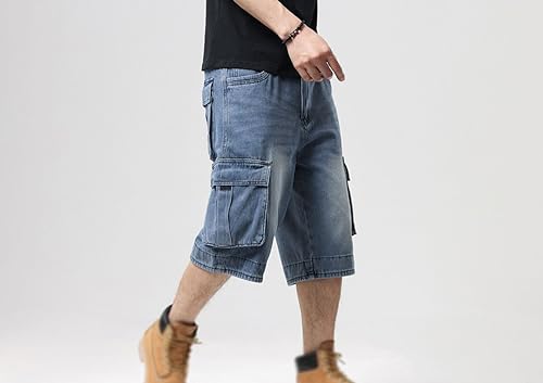 Mannen Distressed Jean Shorts Jonge Mode Grote Maten Rechte Relaxed Denim Capri Broek Hip Hop Stijl, Blauw, 4XL