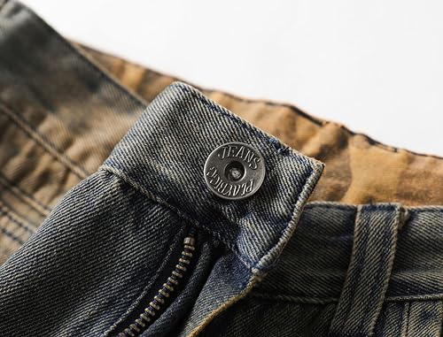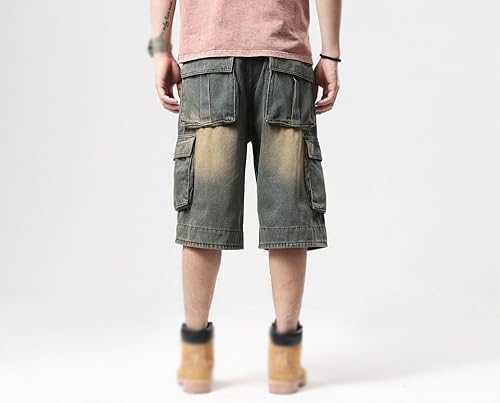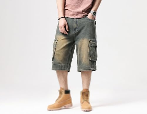 Mannen Distressed Jean Shorts Jonge Mode Grote Maten Rechte Relaxed Denim Capri Broek Hip Hop Stijl, Geel, XL
