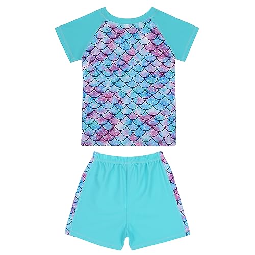 MASOCIO UV-badkleding meisjes 3-12 jaar UV-bescherming UPF 50+ kleine kinderen zwempak badmode, Meerkleurige schalen 6, 10-12 Jaar