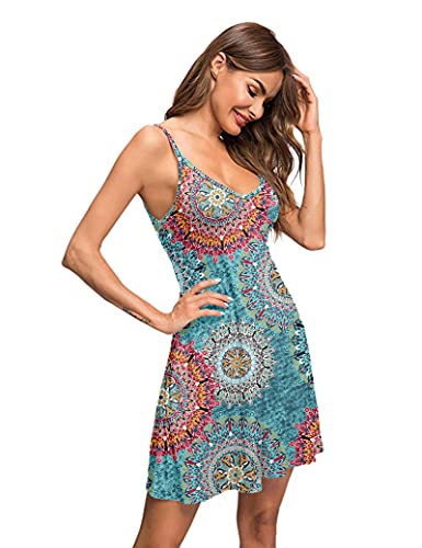 Kenmerken: mouwloos, kenmerken met een sexy open V-hals, losse pasvorm, spaghettibandjes, bloemenprint, mini boven de knie, hoge lage zoom.