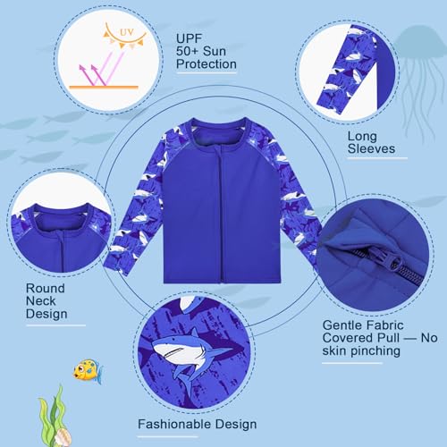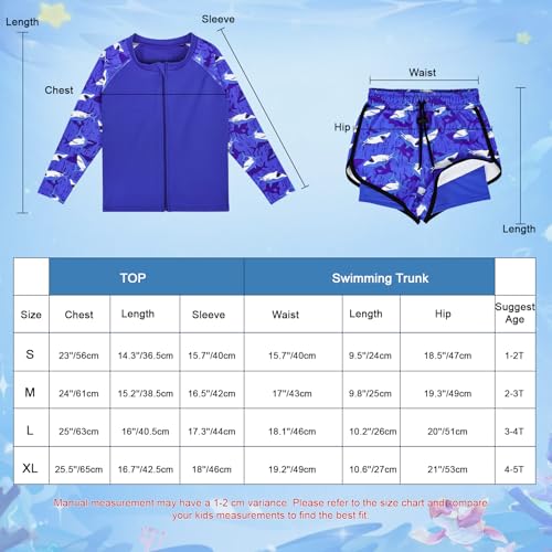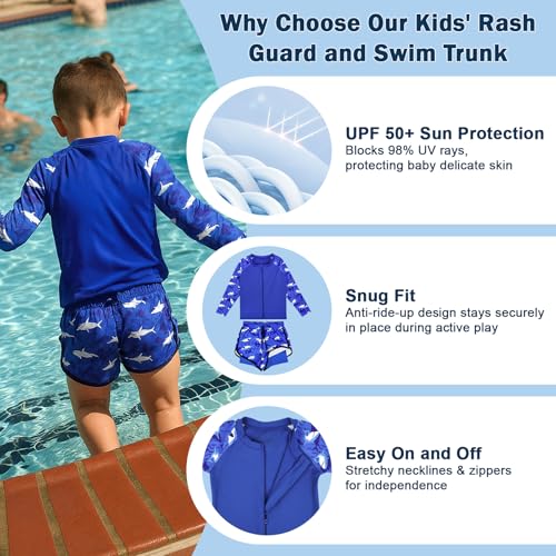 MOEMOE BABY Badpak voor baby’s, jongens en meisjes, tweedelig, uv-bescherming, Rash-Guard-set, badkleding met lange mouwen, zwemshirt en zwemshorts, blauw, 3-4 Jaren