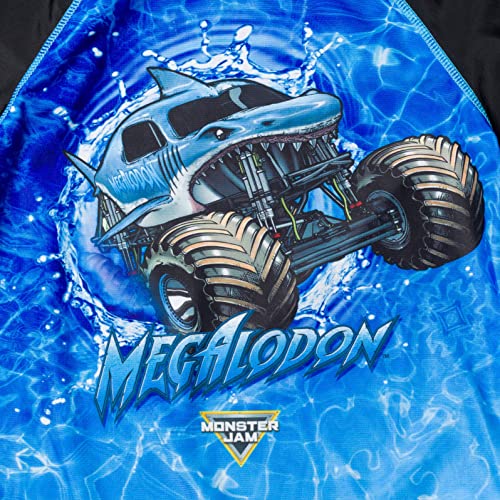 Officieel gelicenseerde Monster Jam Trucks kleine jongens coole en stijlvolle zwemshirt met korte mouwen en schattige en stijlvolle zwemshorts bodems