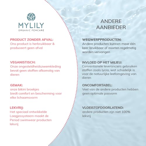 🔄 Herbruikbaar en makkelijk te onderhouden – MYLILY menstruatiezwembroekjes zijn makkelijk schoon te maken en herbruikbaar, waardoor het een duurzaam alternatief is voor conventionele hygiĂ«neproducten. We raden wassen op 30 graden aan.