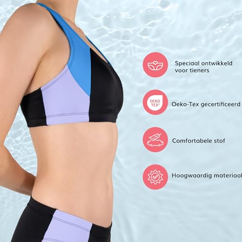 ๐Ÿ’œ Sportief & stijlvol: Het MYLILY bikinibovenstuk is speciaal ontworpen voor tienermeisjes die zich vrij en comfortabel willen voelen in het water en op het land. Met een sportieve snit, modieuze lila en turquoise accenten en optimale ondersteuning is het perfect voor stranddagen, zwemlessen of sportactiviteiten.
