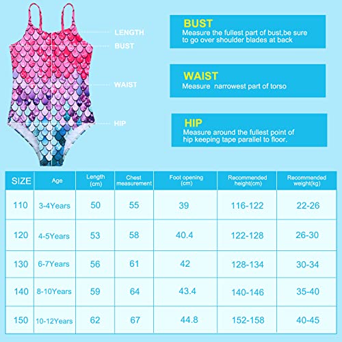 Schattig en uniek: eendelig zeemeerminbadpak in heldere kleuren voor meisjes, zeemeerminpatroon en mooie details. Smalle bandjes aan de achterkant. Kleed ons casual eendelige zeemeerminbadpak voor meisjes, geniet van de zomer, geniet van het strand!